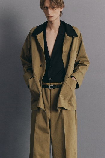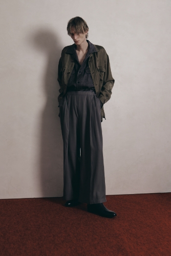 At the heart of ANTHEM A lies a world of contrast.The essence and intricacy of men’s military and tailored garments —rugged, functional, and stoic — are fused with an entirely different spirit:sensual moods, fluid silhouettes, and modern cuts.Strength meets elegance.Boldness intertwines with sensitivity. Sensory richness dances with utility.It is a landscape where opposing forces coexist, harmonize, and give birth to something new.This is the ANTHEM A. With deep respect for the trust we’ve built with our artisans, we remain committed to preserving the traditions, skills, and employment rooted in Japan.Through sustainable craftsmanship, we strive to carry these values forward — not just for now, but for generations to come.