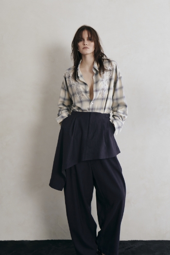 無骨で機能的、静かに主張するメンズのミリタリーやテーラリングの本質と技巧。それとは正反対の、センシュアルなムード、しなやかなシルエット、そしてモダンなカッティング。力強さとエレガンス、大胆さと繊細さ、感性と機能美。対極の美が重なり合い、調和し、あらゆる両極が混在する、ミクスチャーな世界。