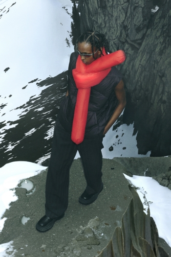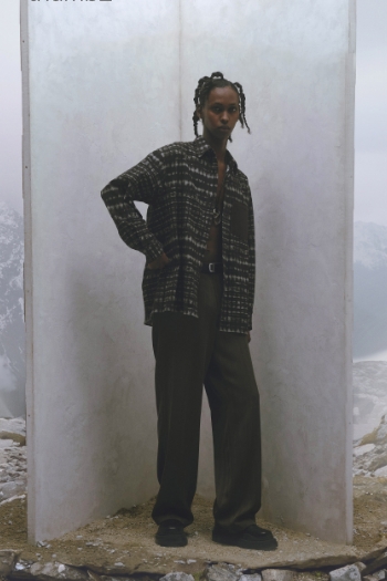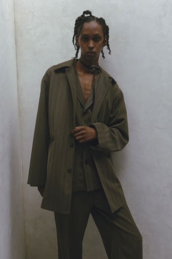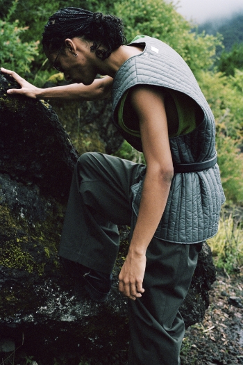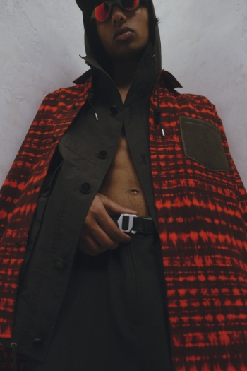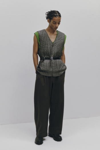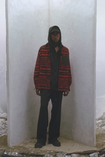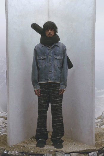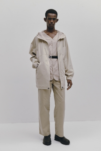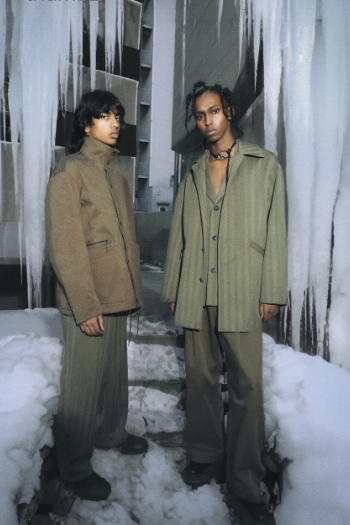 2023FWデビュー コンセプト <衣服を分岐進化させ「並行世界の肖像」を生み出す> パフォーマンスウェアなどで培ったプロダクトデザインのテクニカルな手法や考え方をトラディショナルな服に応用し、アップデートしていく中で実用的で新しい価値、世界観を生み出しています。
