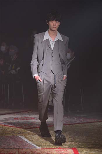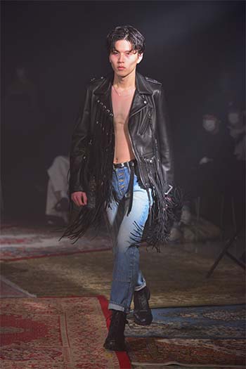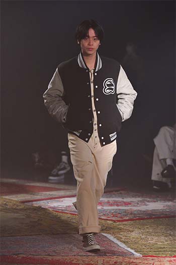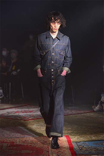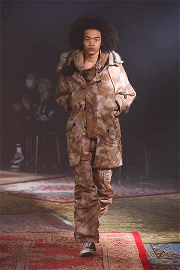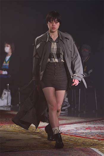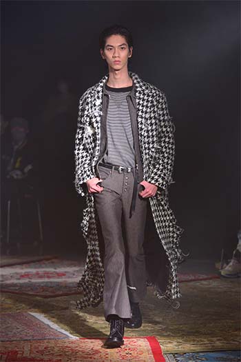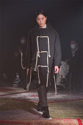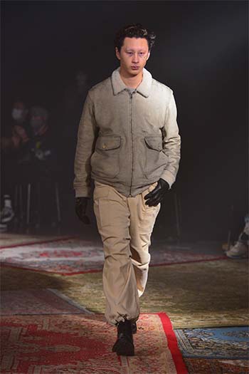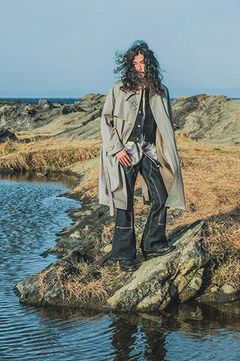 Designer: Hayashi Rikuya (born in Tokyo, 1995). After studying at Bunka Gakuen University, coconogacco and Fashion Institute of Technology in New York, he graduated from Musashino Art University with a first-class honor. Hayashi founded his own brand "SUGARHILL" during his study at FIT. He invents textiles, conceives color and texture and alter silhouette with a hint of workwear and military clothing: a process how he designs.