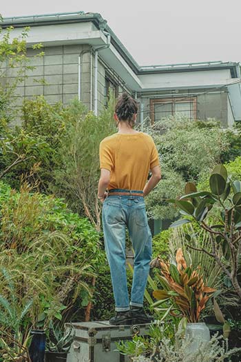 林陸也、1995年生まれ、東京都出身。文化学園大学、ここのがっこうを経て、ニューヨーク州立ファッション工科大学(FIT)を修了。FIT在学中にブランド設立。その後、武蔵野美術大学空間演出デザイン学科に編入し2019年に首席卒業。